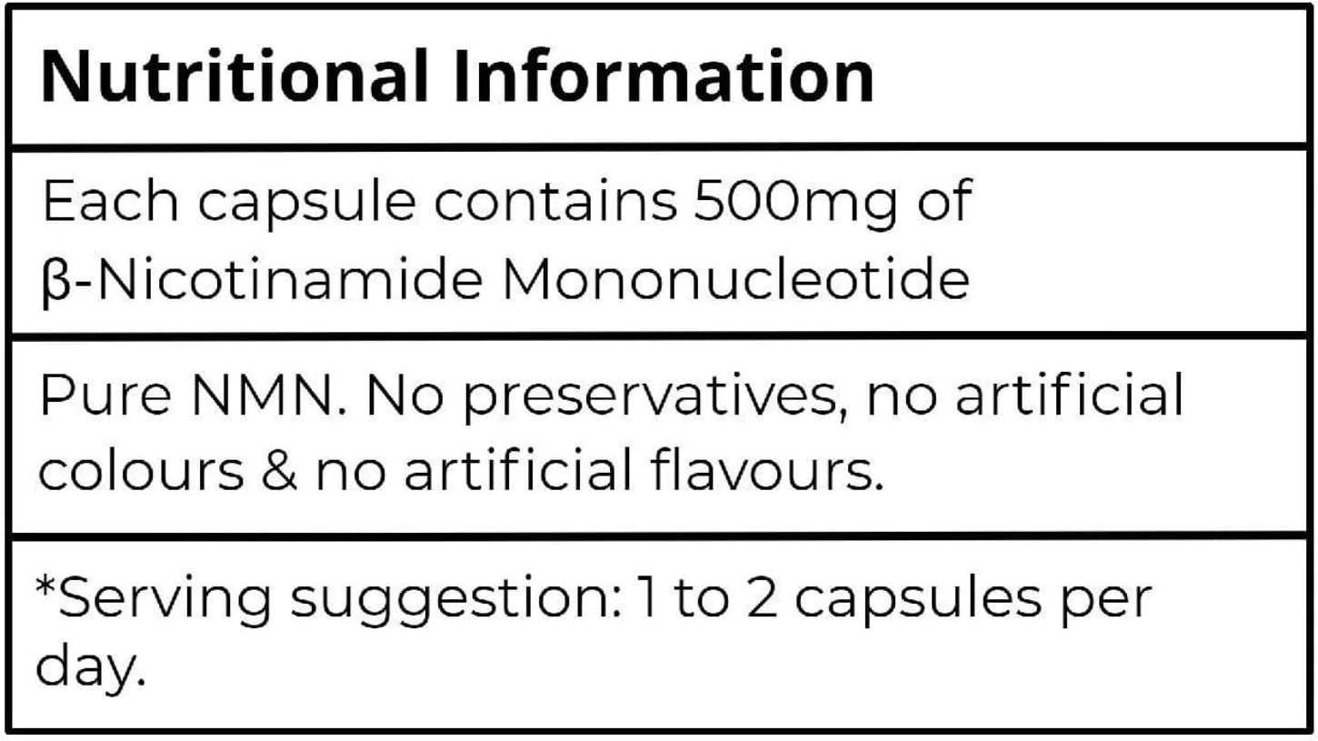 - High Potency: Each capsule delivers a potent dose of 500mg of NMN, a key precursor to NAD+, a vital molecule for cellular energy production.