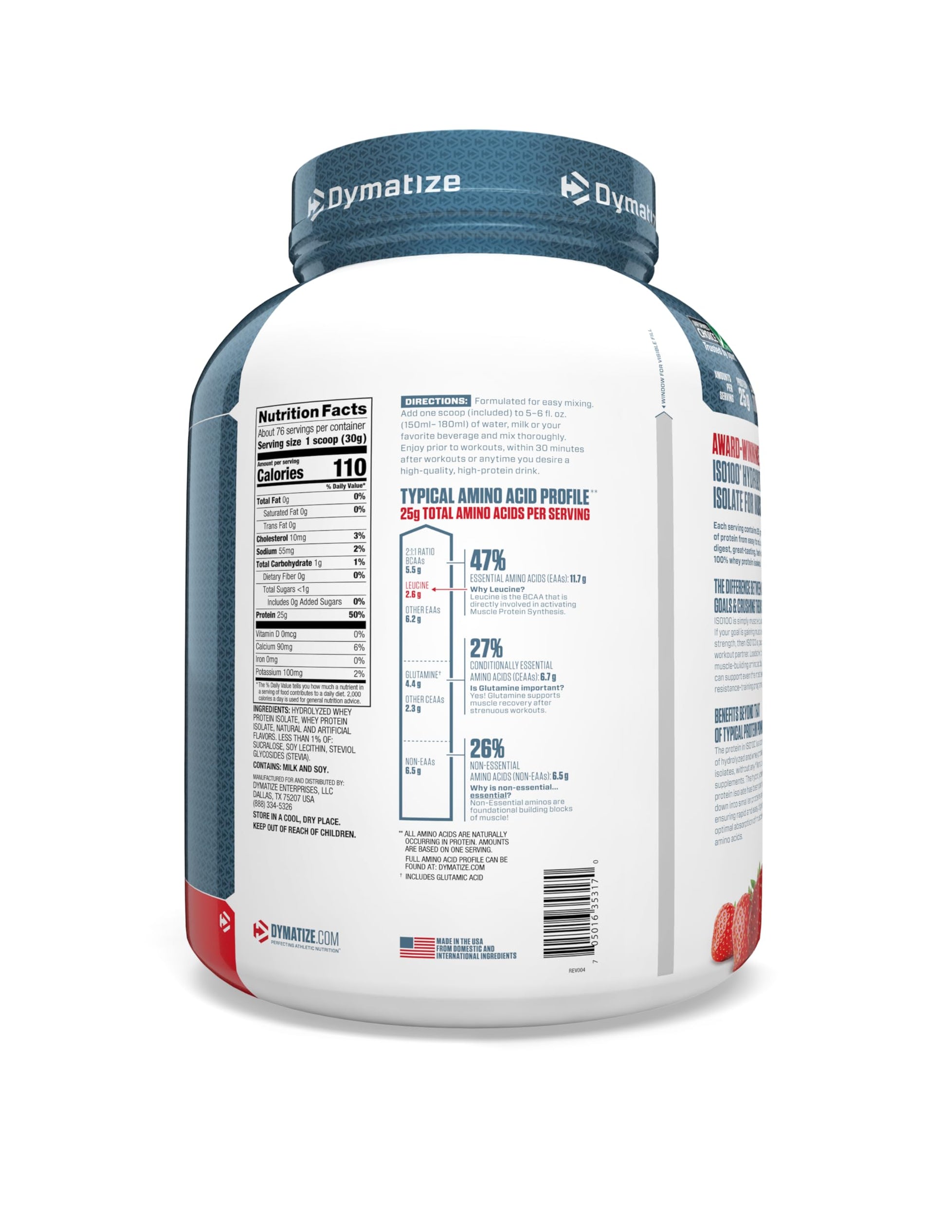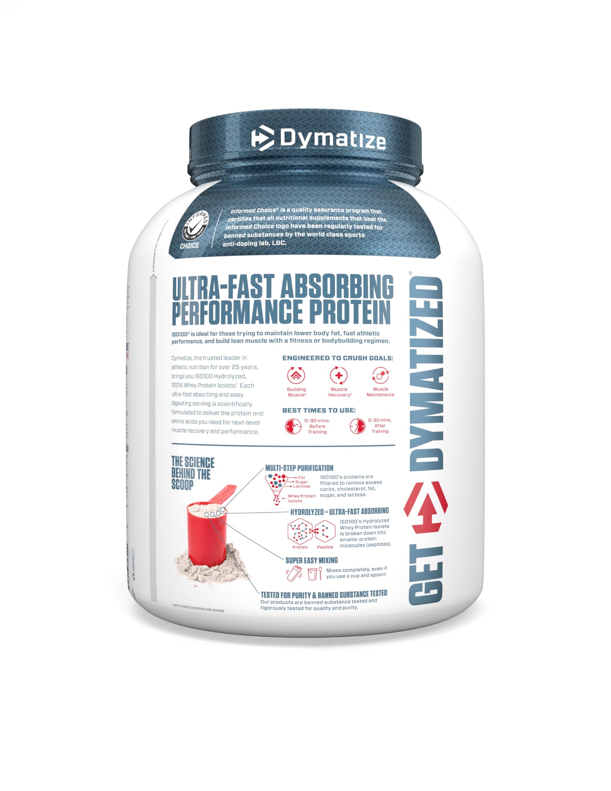 - The Fastest Absorbing Protein: Made with 100% hydrolyzed whey protein isolate, Dymatize ISO100 delivers essential amino acids directly to your muscles, kickstarting the recovery process immediately after your workout. 💨