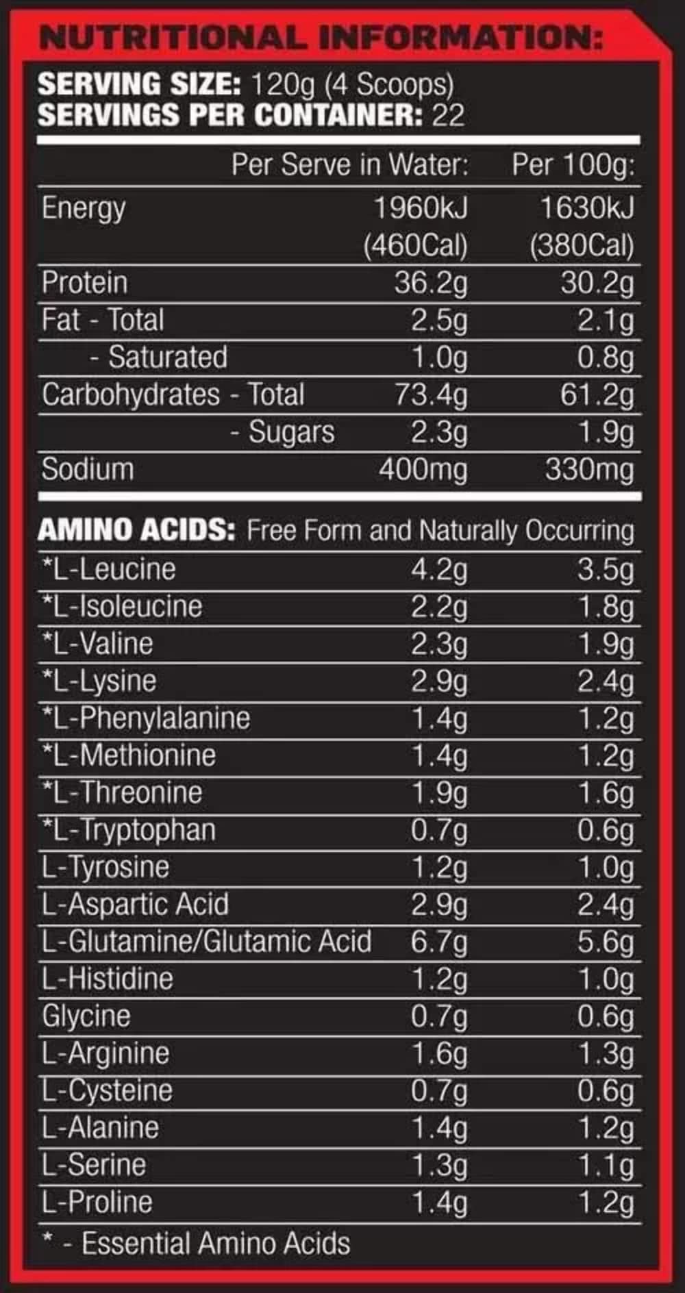 Max's Clean Mass provides the perfect carb to protein ratio to pack on lean muscle Mass. Clean Mass combines our sustained release GlycoForce Carb System with our fast, medium and slow release Anabolic Protein Blend in a 2: 1 ratio - ideal for adding size without fat. To help support the maximum growth we also include specific amino acids and potent activators that fuel recovery and stimulate protein synthesis. All proteins have specific characteristic, strengths and weaknesses. Whey is fast acting – ideal for taking after training but not a good choice before bed when you need slow release. This specific combination of fast, medium and slow dairy proteins pushes out the growth window by several hours. You stay anabolic for longer, you pack on more muscle, get stronger, bigger and more powerful. Our Hydrolyzed Whey Peptides are produced by treating purified Whey Protein Isolate with specific enzymes that cleave the peptide bonds of the whey protein structure to produce shorter peptide chains. Whey Protein Isolate is natures best protein for building lean muscle. It is purified from milk using an advanced two-stage Cross Flow Technology of Ultra and Microfiltration to produce a pure, un-denatured WPI with high bioactivity and highest bioavailability. Casein gels in your stomach during digestion which means it is slower to digest and absorb. Milk Protein Isolate - this natural blend of 20 percent Whey and 80 percent Casein, also contains Micellar Casein, the slowest digesting dairy protein. Micellar Casein is known for its anti-catabolic properties and can sustain elevated amino acid levels for up to 8 hours. Max's Clean Mass is recommended for trainers whose goal is to gain lean muscular weight without adding excess fat. It is also a great post-workout formula and ideal for trainers who want to optimize recovery after hard training or sport. Comes in 2.72 kg jar. Available in chocolate fudge sundae flavor.