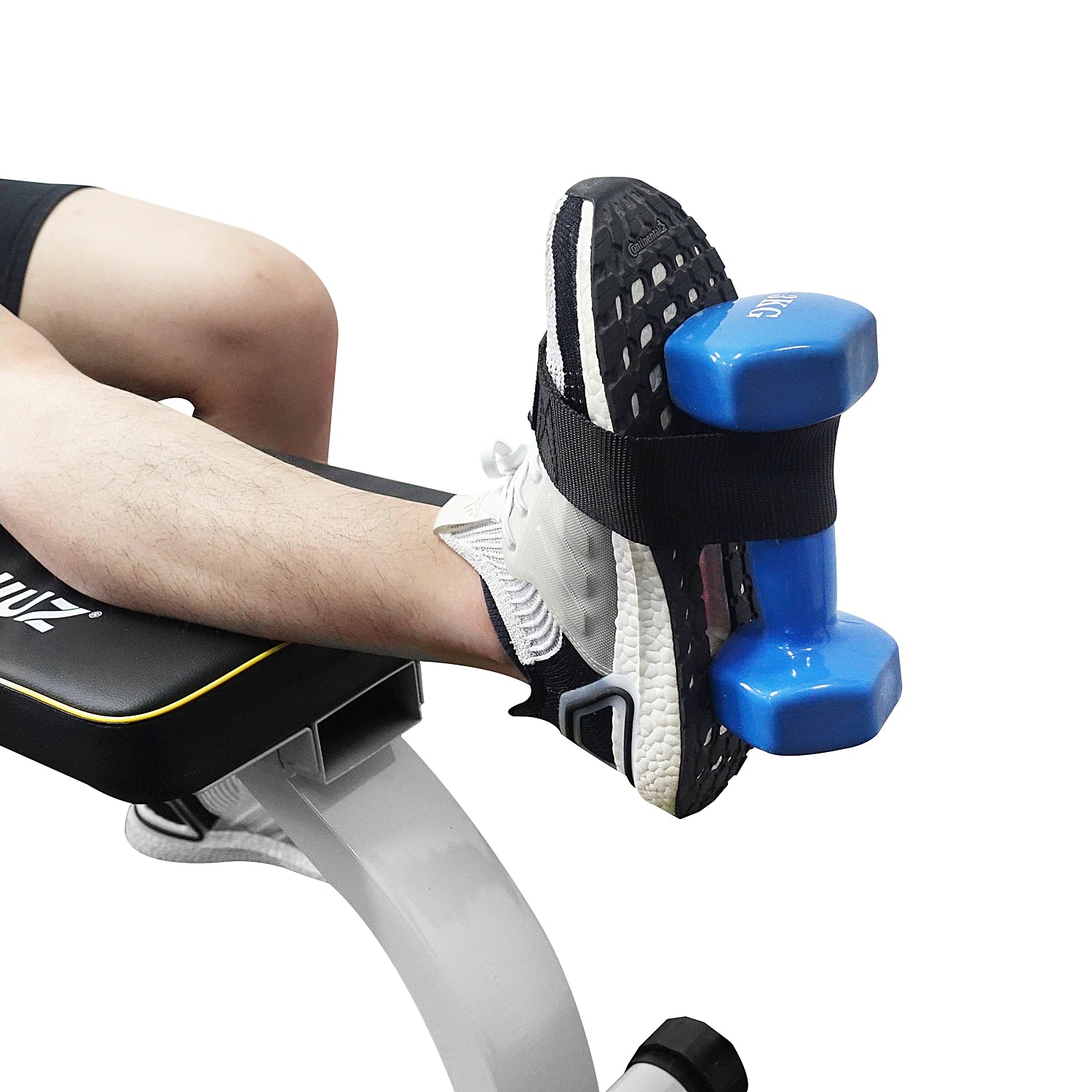 The Tibialis Anterior strap is adjustable and wraps around dumbbells to help strengthen your muscles.