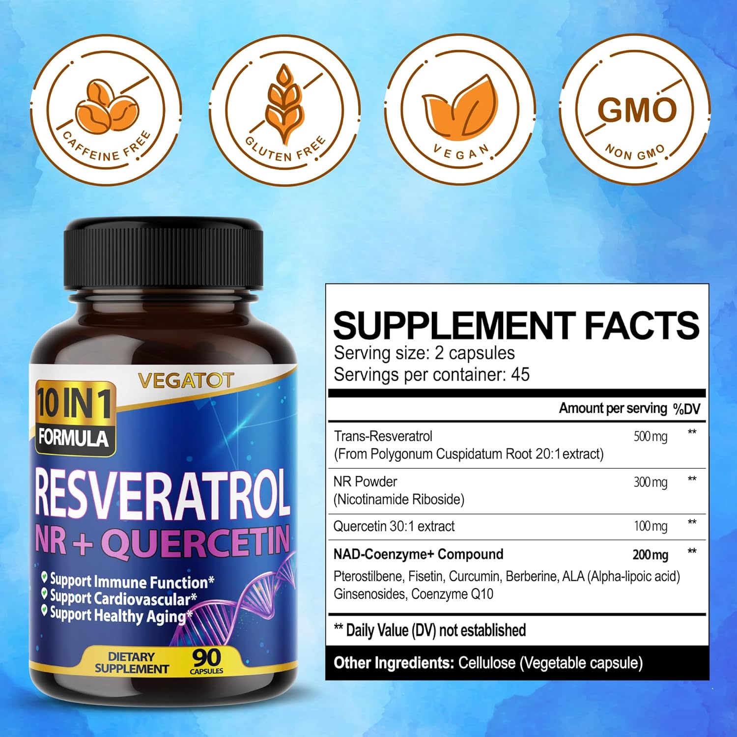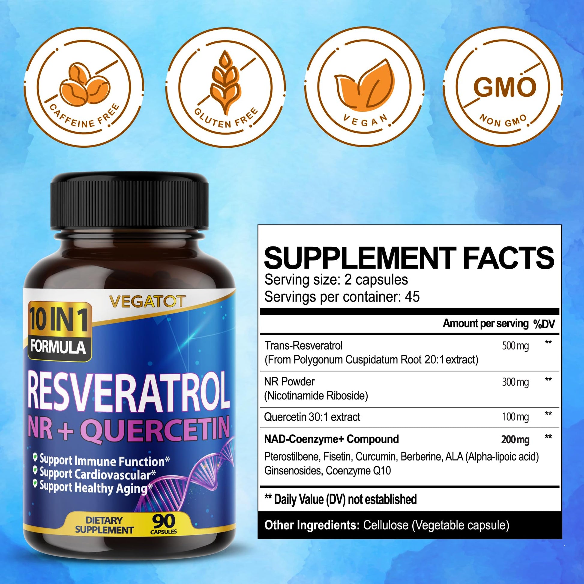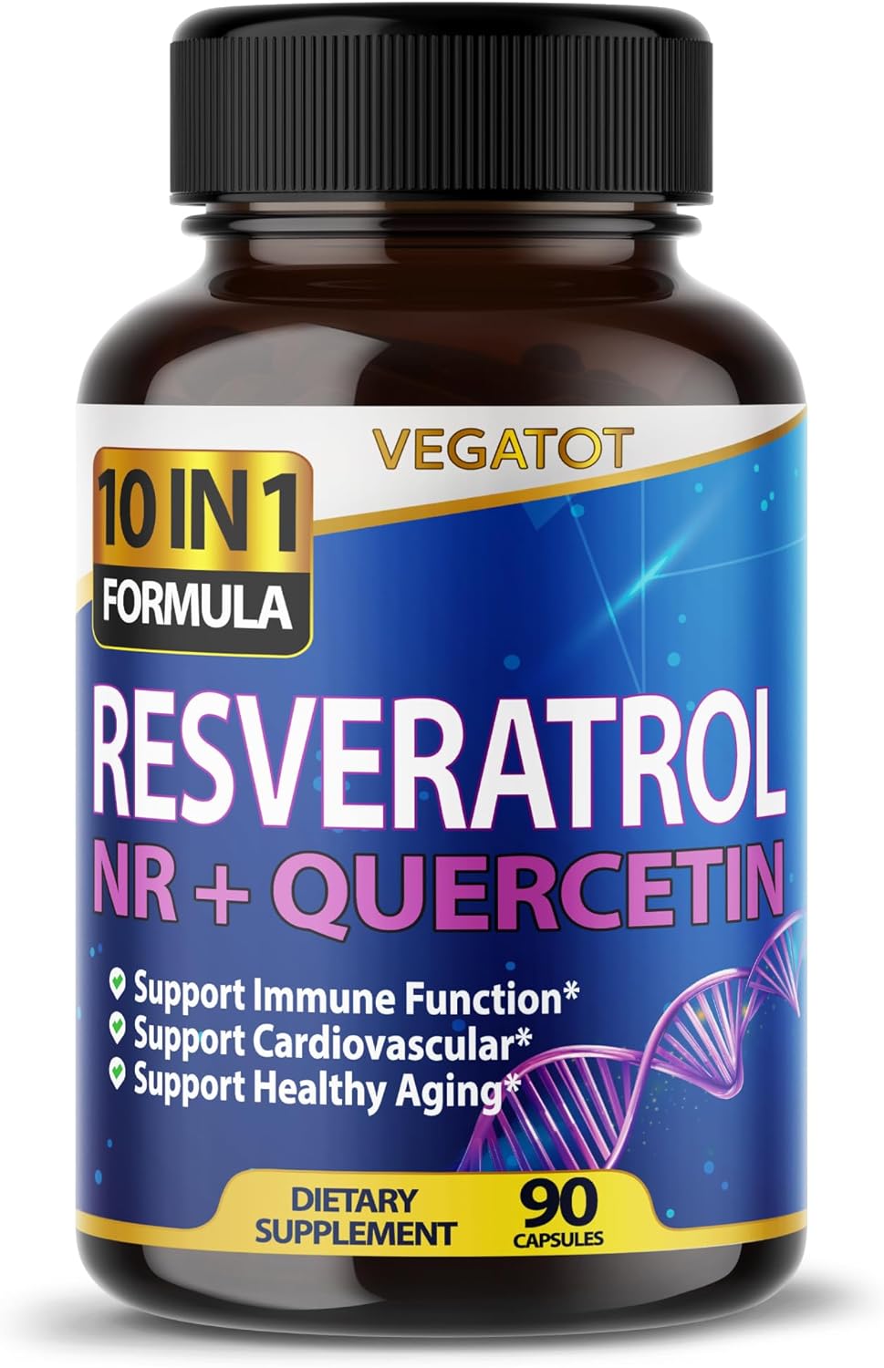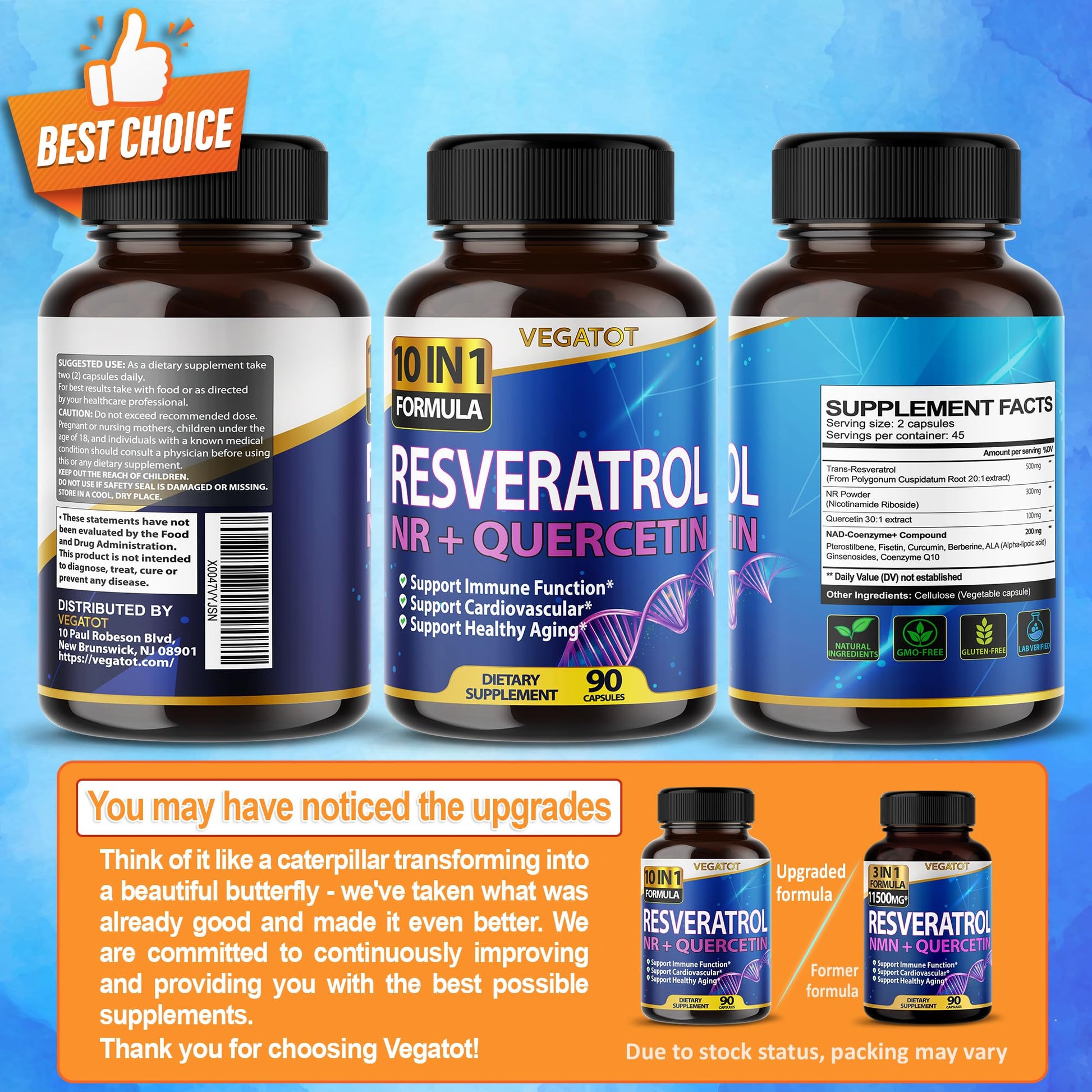 Vegatot NMN 3 in 1 High Strength Resveratrol 11500mg with NMN Quercetin Healthy Aging Immune Brain Boost Joint Support (90 Count (Pack of 1))