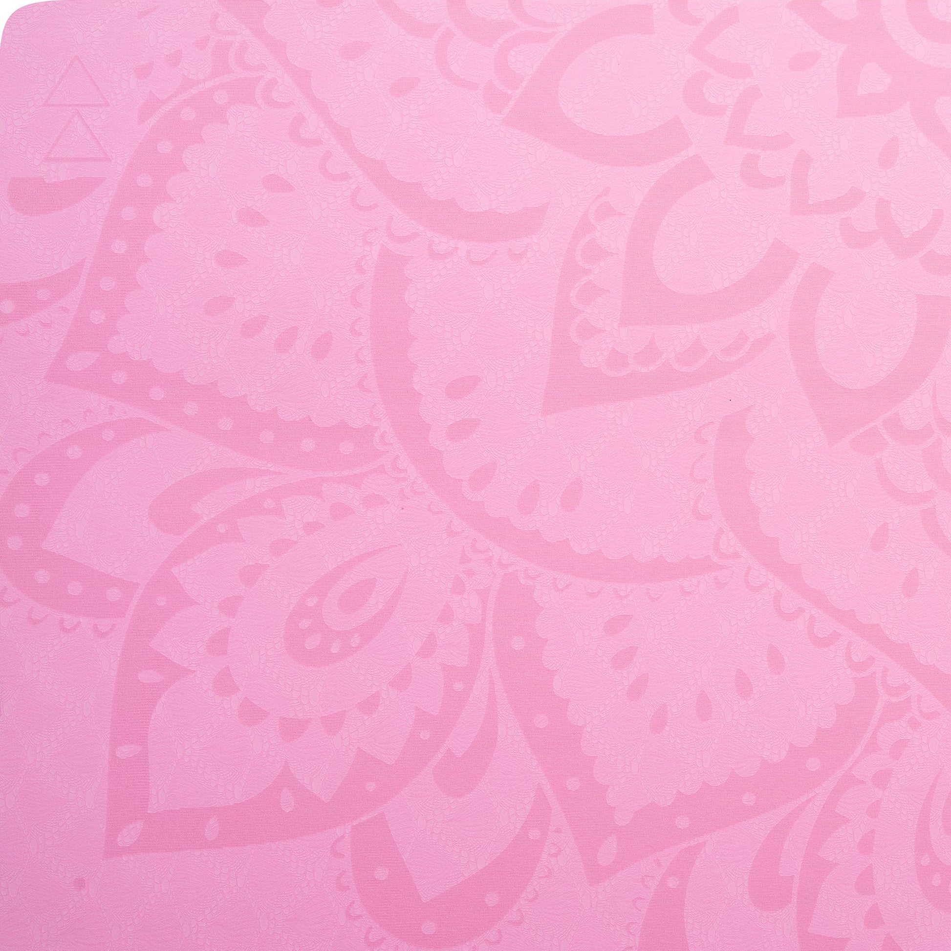Yoga Design Lab Flow Yoga Mat 6mm Pure Mandala Rose.This lightweight, ultra-cushioned mat is ideal for beginners or those looking to add an occasional yoga practice to their fitness routine. A great all-around combination of cushion, durability, and performance.Plush TPE material is inviting and provides a soft ride, while the closed cell construction prevents moisture and bacteria from seeping into the mat. Approximately half the weight of other mats, The Flow Mat is incredibly light and easy to transport.The unique, textured pattern aids in alignment learning correct form.
